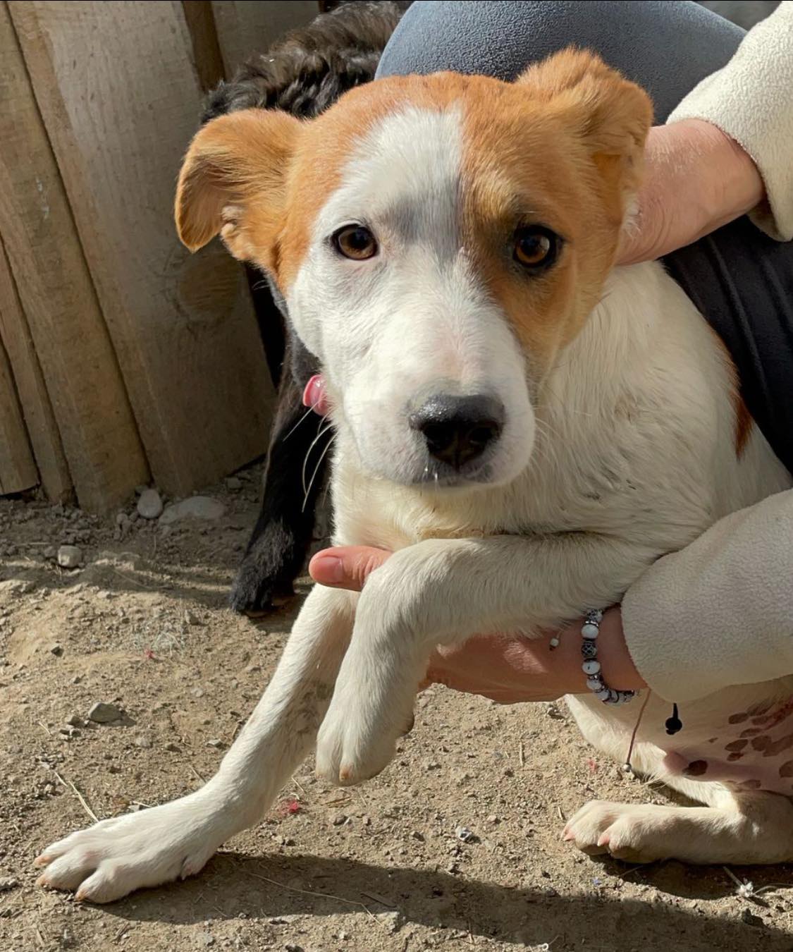 Pirate-Face und seine Geschwister wurden von der Mama auf einem Feld geboren. Eine Tierschützerin fand die Familie und holte sie zu sich. Das rettete ihr Leben bei Minus 16 Grad. Nun haben sie ihre eigene Hütte und werden liebevoll umsorgt.