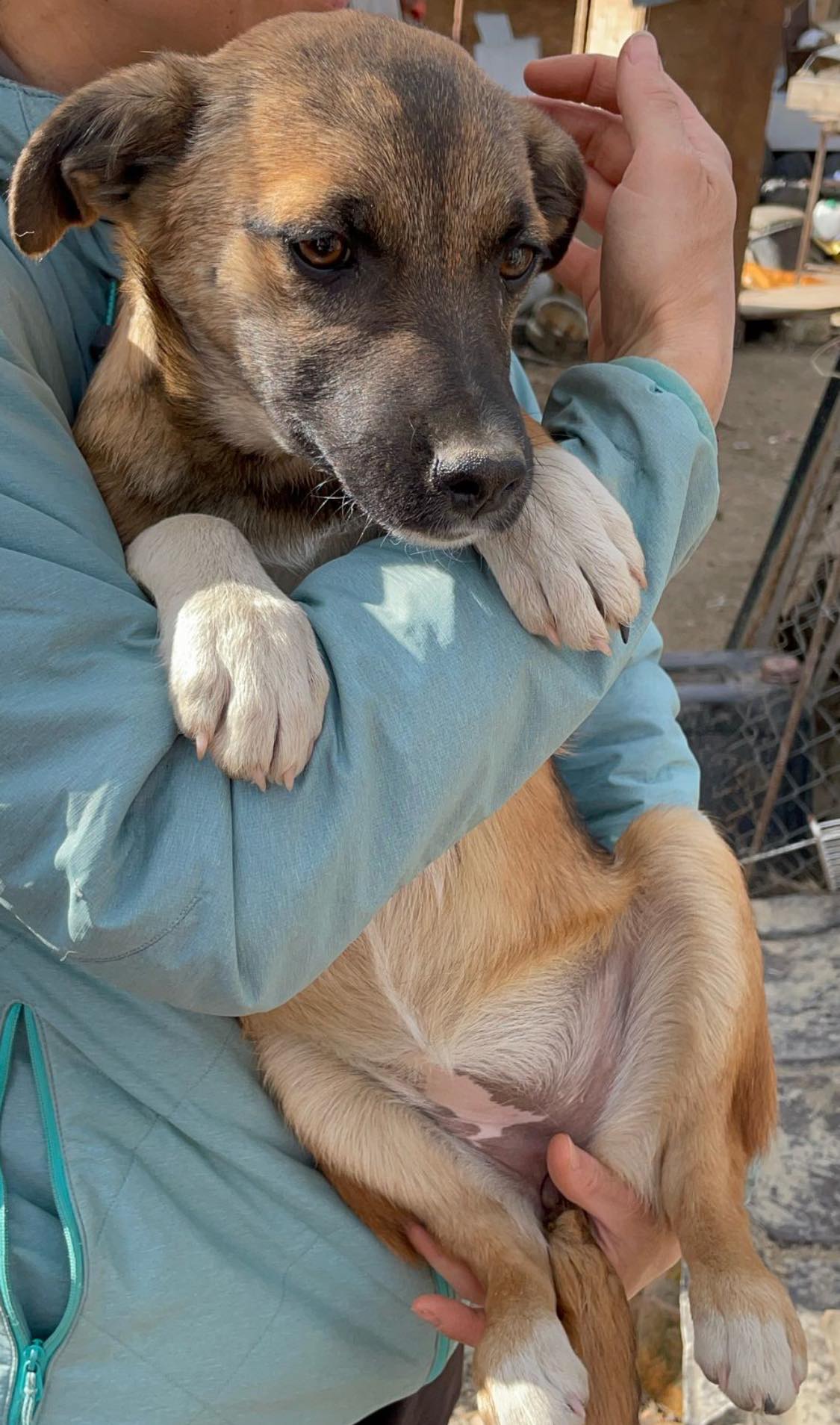 Tiny-Girl und ihre Geschwister wurden von der Mama auf einem Feld geboren. Eine Tierschützerin fand die Familie und holte sie zu sich. Das rettete ihr Leben bei Minus 16 Grad. Nun haben sie ihre eigene Hütte und werden liebevoll umsorgt.